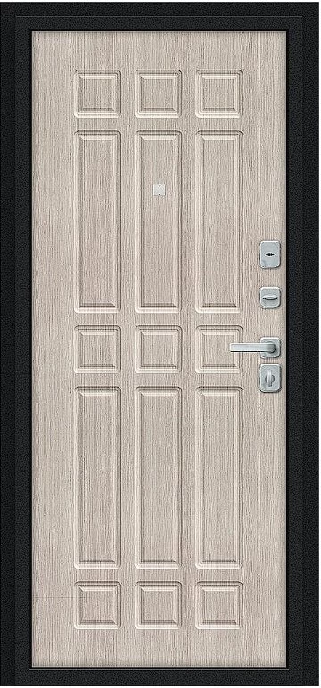 Надежная входная Дверь Браво Мило МФ/BChrome Букле черное/Cappuccino Melinga премиум класса по цене 33 470 руб. Большая толщина стали защитит от проникновения в ваш дом, квартиру или коттедж. Используется очень качественная фурнитура: замки, цилиндры, ручки, защелки. Покрытие и отделка двери изготовлено под внимательным контролем производителя. Дверь имеет долгий срок службы и гарантию.